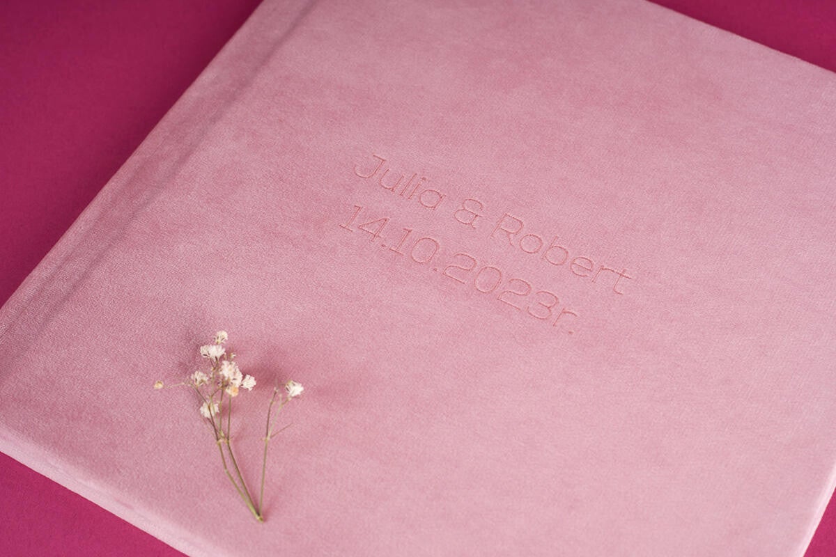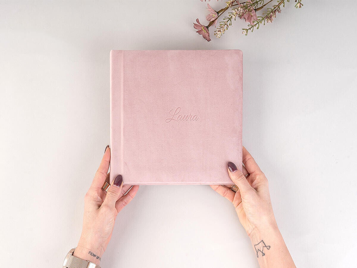 25 x 25 / Soft Rose Pink Fluweel / Side Text - € 30,00